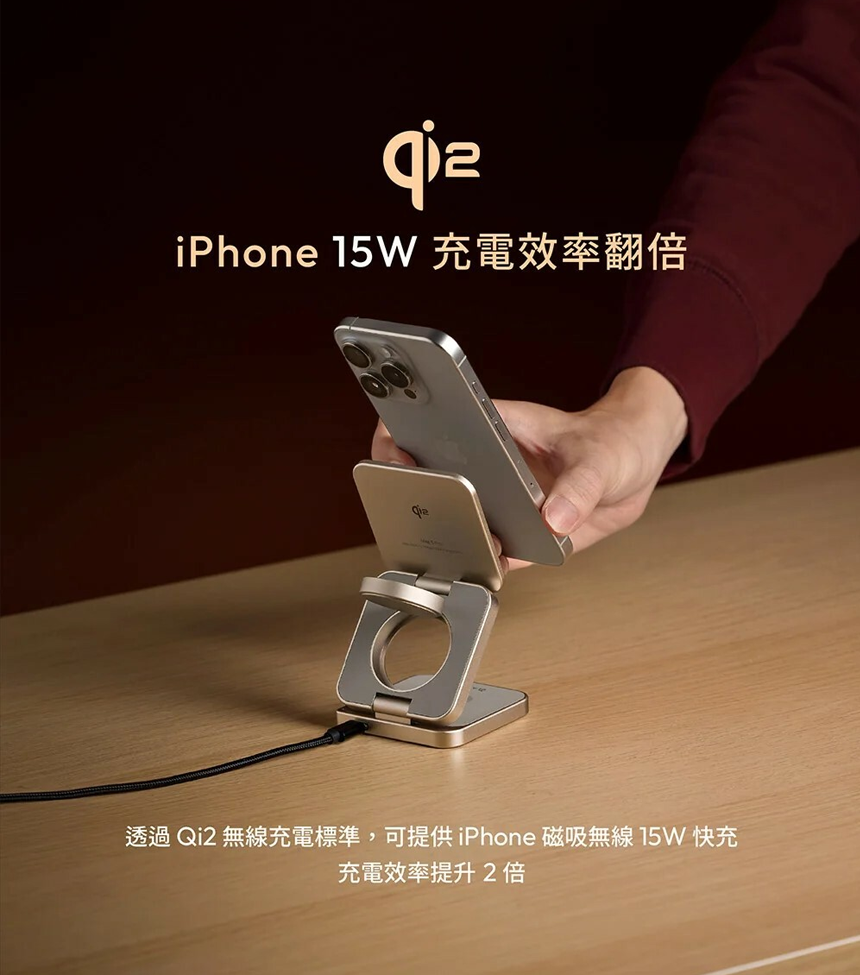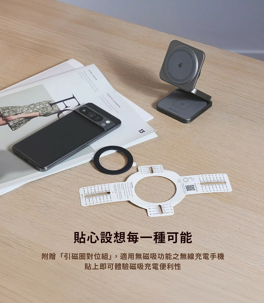 支援直立或橫向充電,快速簡易的對位連接無線充電,不論是瀏覽訊息或是觀賞影片,都能提供磁吸帶來的最佳充電體驗。