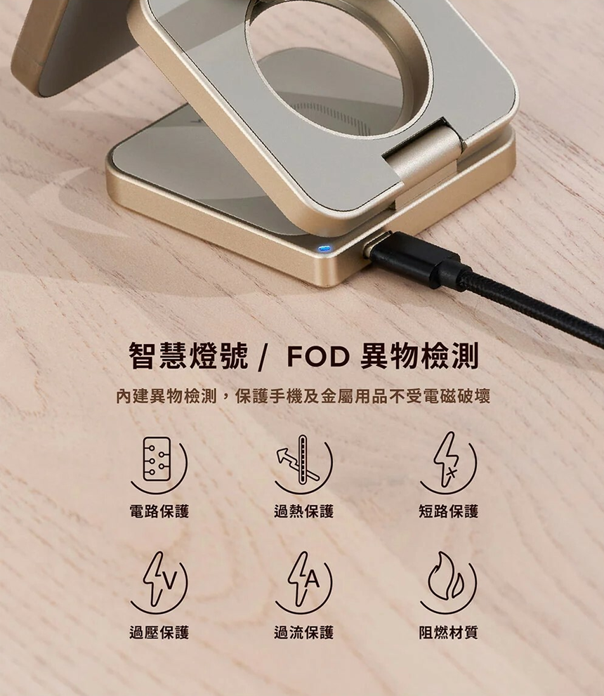 內建異物檢測模式,保護你的手機及金屬用品不受電磁破壞,提供過充、過熱與短路保護。