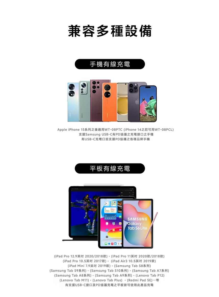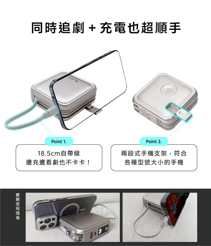 ・自帶2條20W快充充電線18.5cm,滿足各種裝置快充需求