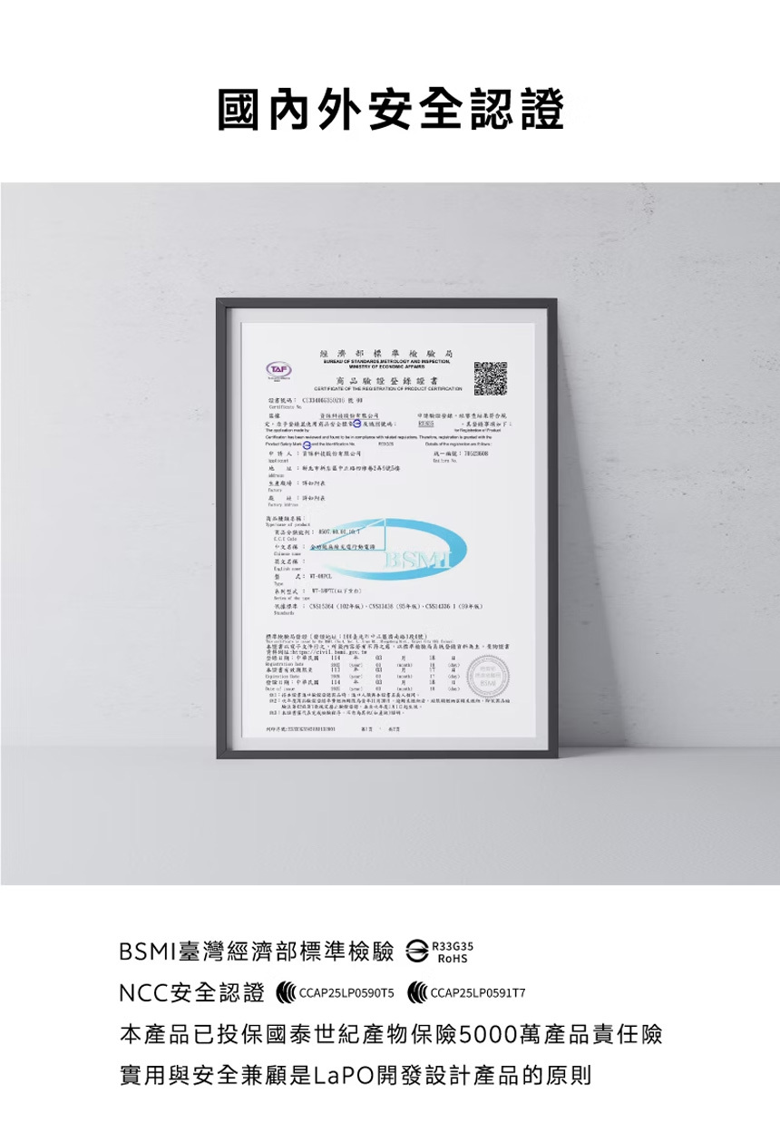・搭載智慧溫控管理晶片,取得BSMI/NCC國家安全認證