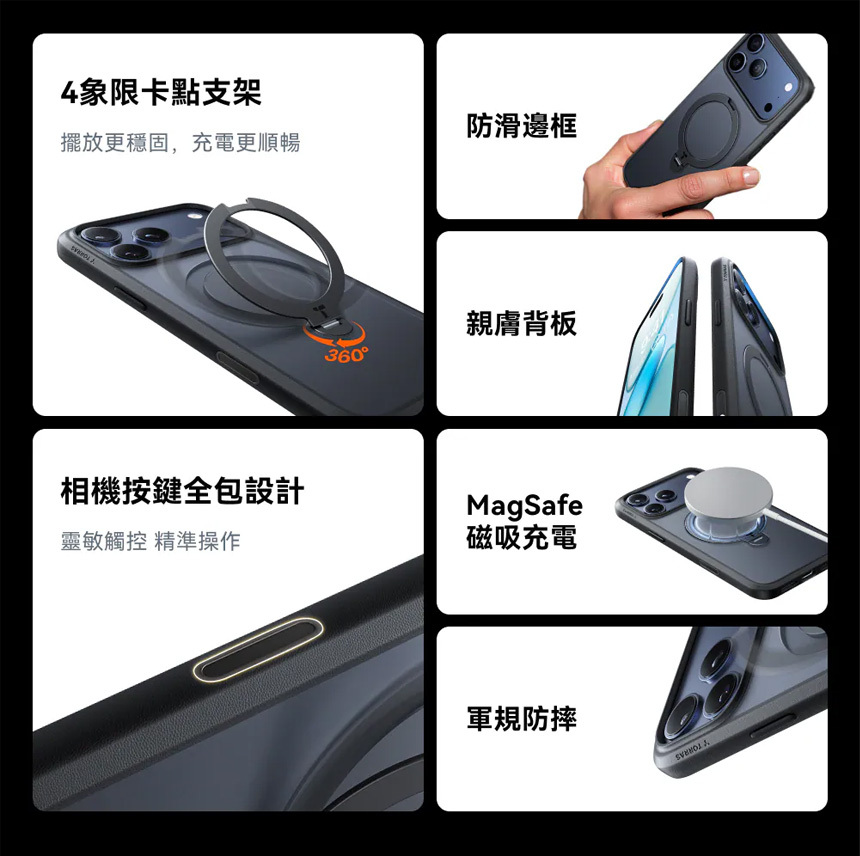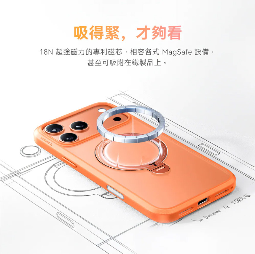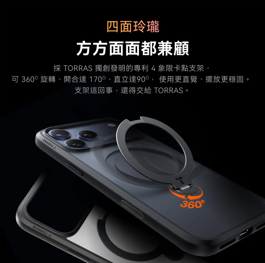 TORRAS Ostand Spin Magnetic 相機按鍵旋轉支架防摔手機殼 for iPhone 17Pro 17 Pro Max